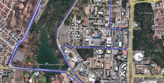 5.1 A competição terá percurso de aproximadamente 7 km com largada de PCD às 7:00 e Pelotão Geral (feminino e masculino) Às 07:10. A largada e chegada será dentro das dependências da sede do Detran-MT (Centro Político e Administrativo) em frente ao barracão de vistoria de veículos, a largada será nas ruas internas do Detran em direção ao trevo da Av. Paiaguás, conforme o mapa que abaixo se segue: