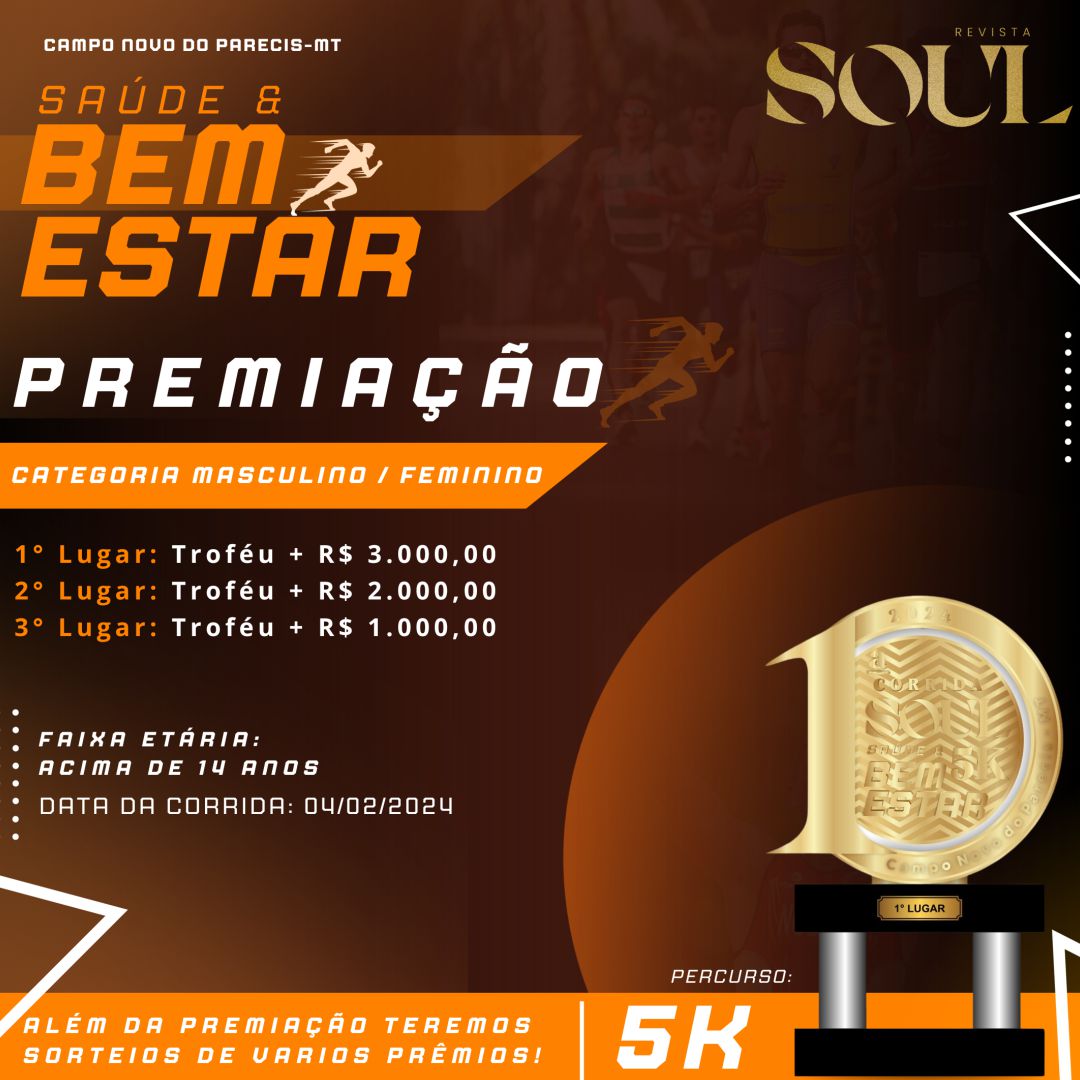 Artigo 1º. 1º CORRIDA SOUL SAÚDE E BEM ESTAR, aqui denominado corrida, será realizada no dia 04 de Fevereiro de 2024.