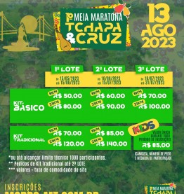 - Kit Básico (número de peito, chip e medalha na chegada da prova) – R$ 50,00 + taxa de comodidade do site;