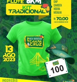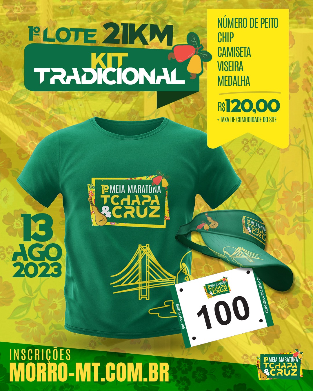 - Kit Tradicional (número de peito, chip, camiseta, viseira e medalha na chegada da prova) – R$ 120,00 + taxa de comodidade do site;