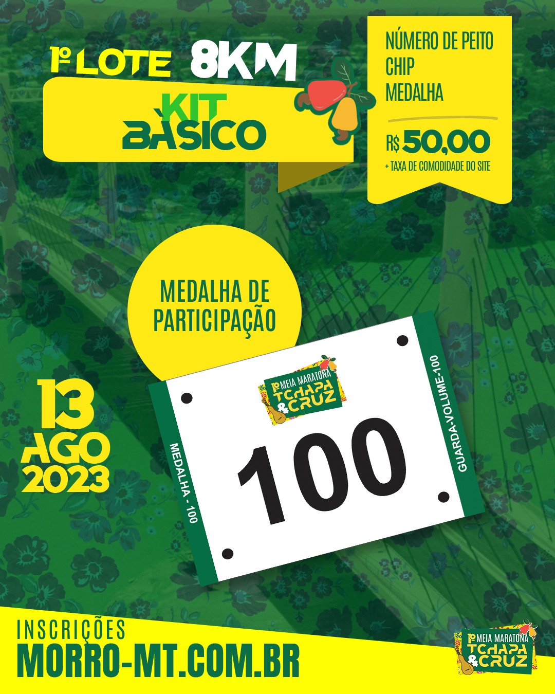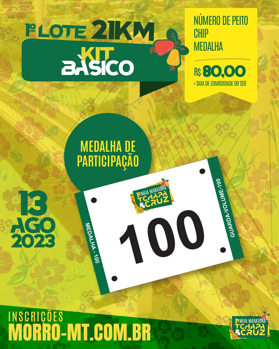 - Kit Básico (número de peito, chip e medalha na chegada da prova) – R$ 70,00 + taxa de comodidade do site;