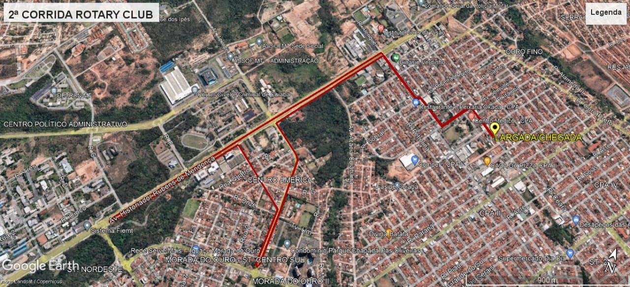 LOCAL DA LARGADA: Em frente ao Rotary Club Cuiabá CPA, bairro CPA II. Rua Rotary, 46 – Antiga Rua Bahia.