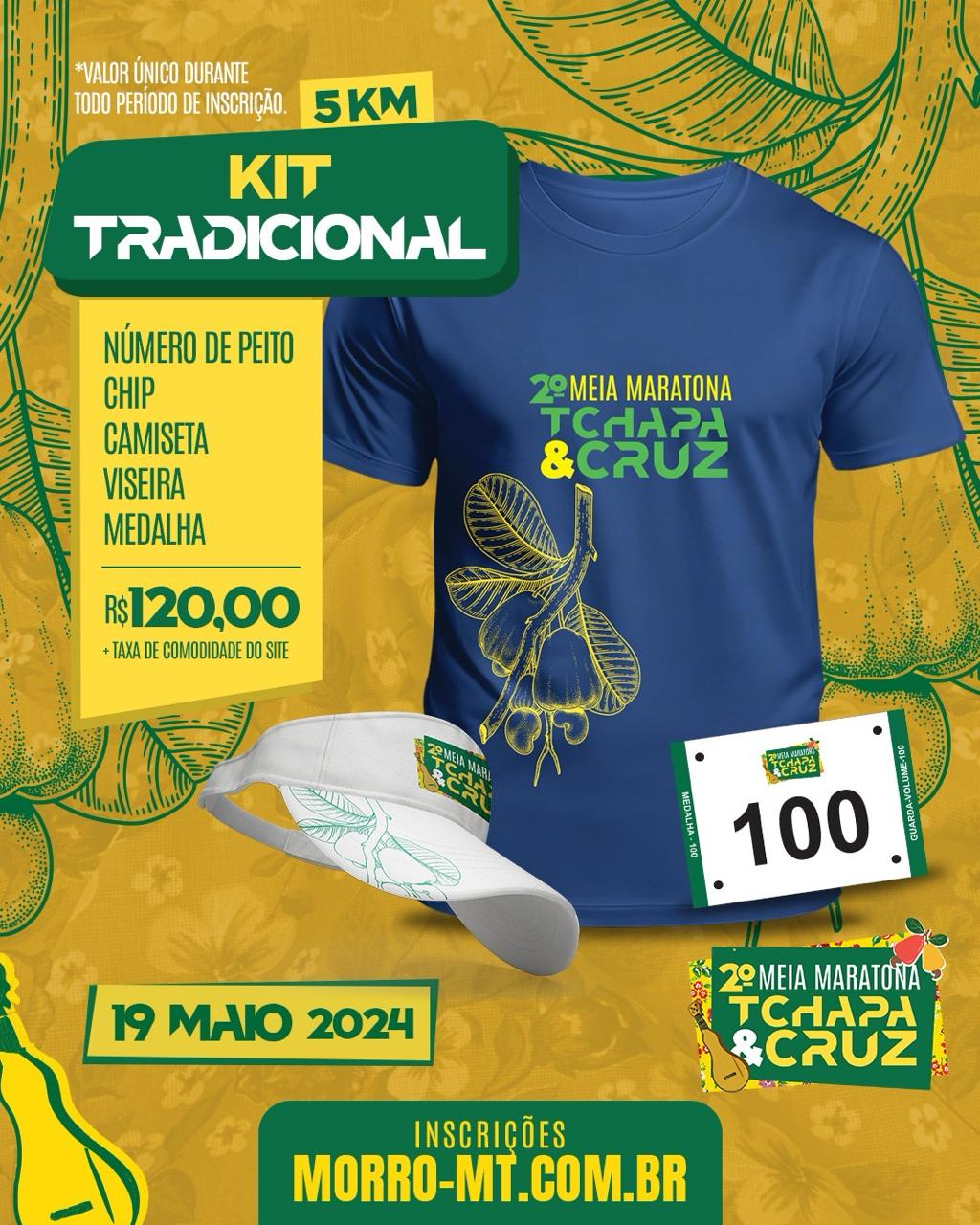 - Kit Tradicional (número de peito, chip, camiseta, viseira e medalha na chegada da prova) – R$ 120,00 + taxa de comodidade do site;