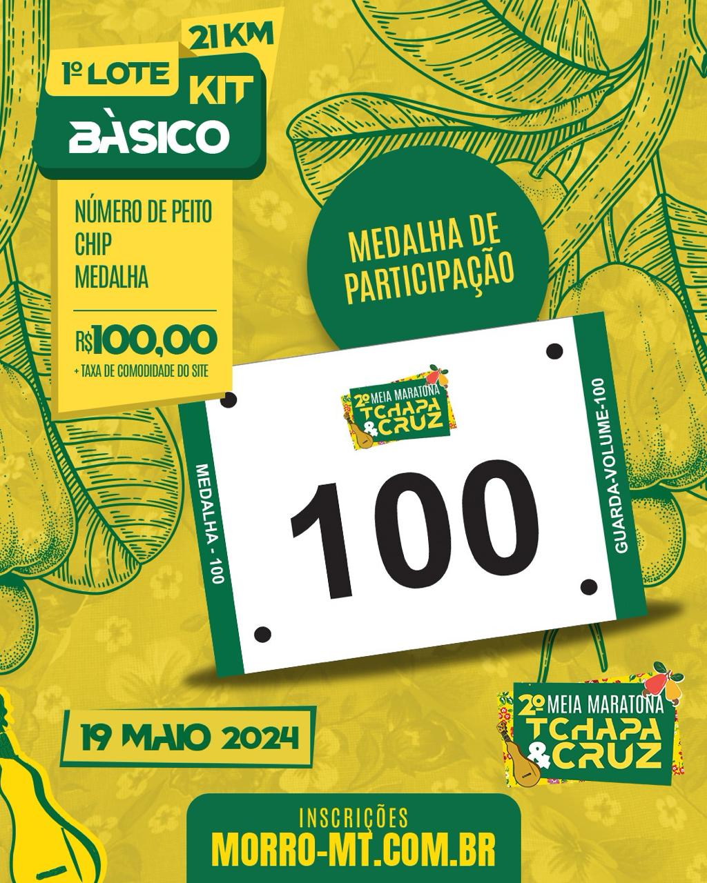 - Kit Básico (número de peito, chip e medalha na chegada da prova) – R$ 100,00 + taxa de comodidade do site;