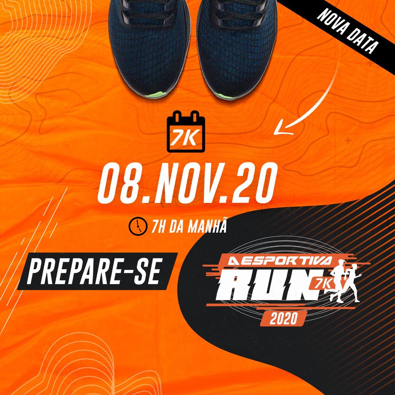 A terceira edição da A Esportiva run 7k acontecerá em 08 de novembro de 2020.