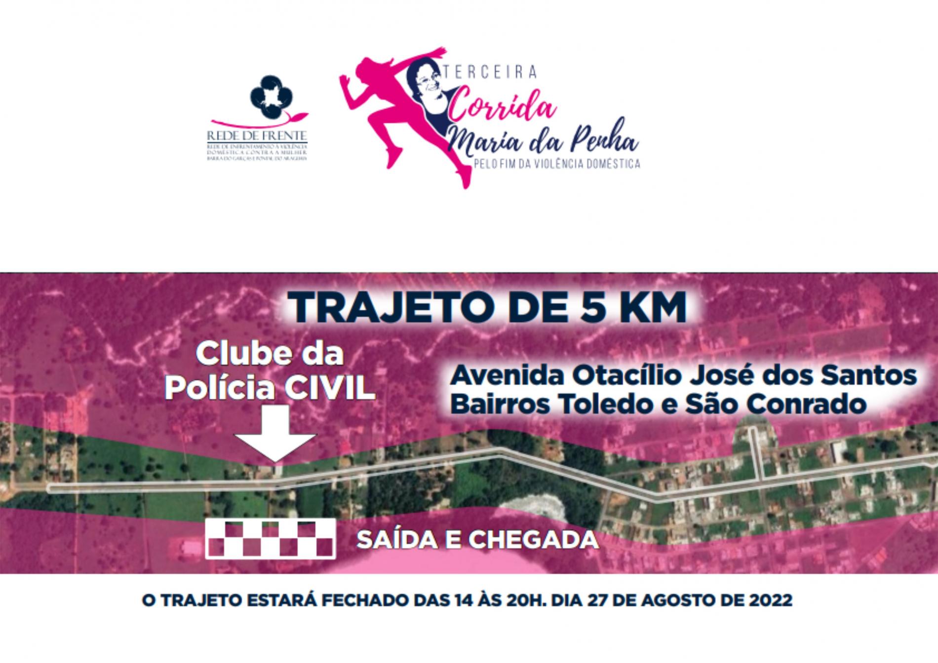 A Corrida Maria da Penha será promovida pela Rede de Enfrentamento à Violência Doméstica Contra a Mulher de Barra do Garças e Pontal do Araguaia/MT, com apoio da MAGALU, UNIMED Araguaia, Sindicato dos Investigadores de Polícia Judiciária Civil do Estado de Mato Grosso, Banco SICREDI, Associação de Defensoras e Defensores Públicos do Estado de Mato Grosso, Federação de Atletismo de Mato Grosso, Associação de Atletismo de Barra do Garças, Grupo 7, Juca Transportes, Poder Legislativo de Barra do Garças, Aragás Comércio de Gás e Água, Mademax, INFOBARRA/INFOGARÇAS, Laboratório Paula Tostes Diagnósticos em Barra do Garças, Secretária de Assistência Social de Barra do Garças, Novo Lar Móveis e Eletrodomésticos, Todimo Materiais para Construção, Assembleia Legislativa do Estado de Mato Grosso, Câmara de Dirigentes Lojistas de Barra do Garças, Pontal do Araguaia e Aragarças, Clínica Veterinária Animais & CIA, OAB/Subseção de Barra do Garças, JP do Araguaia, WB Sonorização, Morro- MT Cronometragem, Faby Festas, Mendonça Super Center, Telarte impressão digital, Level Up Idiomas, TV Centro América e Centro América FM, 99,9, e ainda, contando com a parceira de todas as Instituições que integram a REDE DE FRENTE: Defensoria Pública do Estado de Mato Grosso, Ministério Público, Poder Judiciário, Polícia Judiciária Civil, Polícia Militar, Município de Barra do Garças e Pontal do Araguaia (Secretarias Municipais de Saúde, de Educação e de Assistência Social), Coordenadoria de Saúde Mental, Vigilância Epidemiológica Municipal, CRAS(Centro de Referência de Assistência Social), CADÚNICO(Cadastro Único para Programas Sociais), CREAS(Centro de Referência Especializado de Assistência Social), CAPS-AD(Centro de Atenção Psicossocial-Álcool e Drogas), Secretaria Estadual de Educação/Assessoria Pedagógica, Secretaria Estadual de Saúde/Escritório Regional de Saúde-BG, SAE/CTA(Serviço de Assistência Especializada e Centro de Testagem e Aconselhamento), GML (Gerência de Medicina Legal), Politec (Perícia Oficial e Identificação Técnica), Centro Universitário do Vale do Araguaia – O UNIVAR, UniCathedral, Faculdade Anhanguera, Universidade Federal de Mato Grosso (Campus Universitário do Araguaia), OAB (Ordem dos Advogados do Brasil), Barra Mamma (Associação de Voluntários no Combate ao Câncer em Barra do Garças e Região), Conselho Tutelar, Conselho Municipal de Defesa dos Direitos da Criança e do Adolescente, Conselho Municipal dos Direitos da Mulher, Conselho da Comunidade e UNIMED Araguaia Cooperativa de Trabalho Médico de Barra do Garças-MT, Boticário, Level Up Idiomas, Telart e Delta Express/Garçastur.