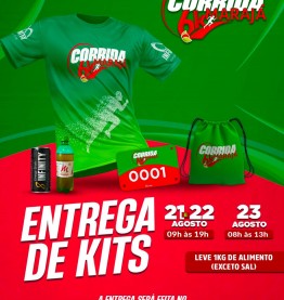O KIT será composto de: número de peito, chip eletrônico e camiseta alusiva do evento, outros itens poderão compor o kit.