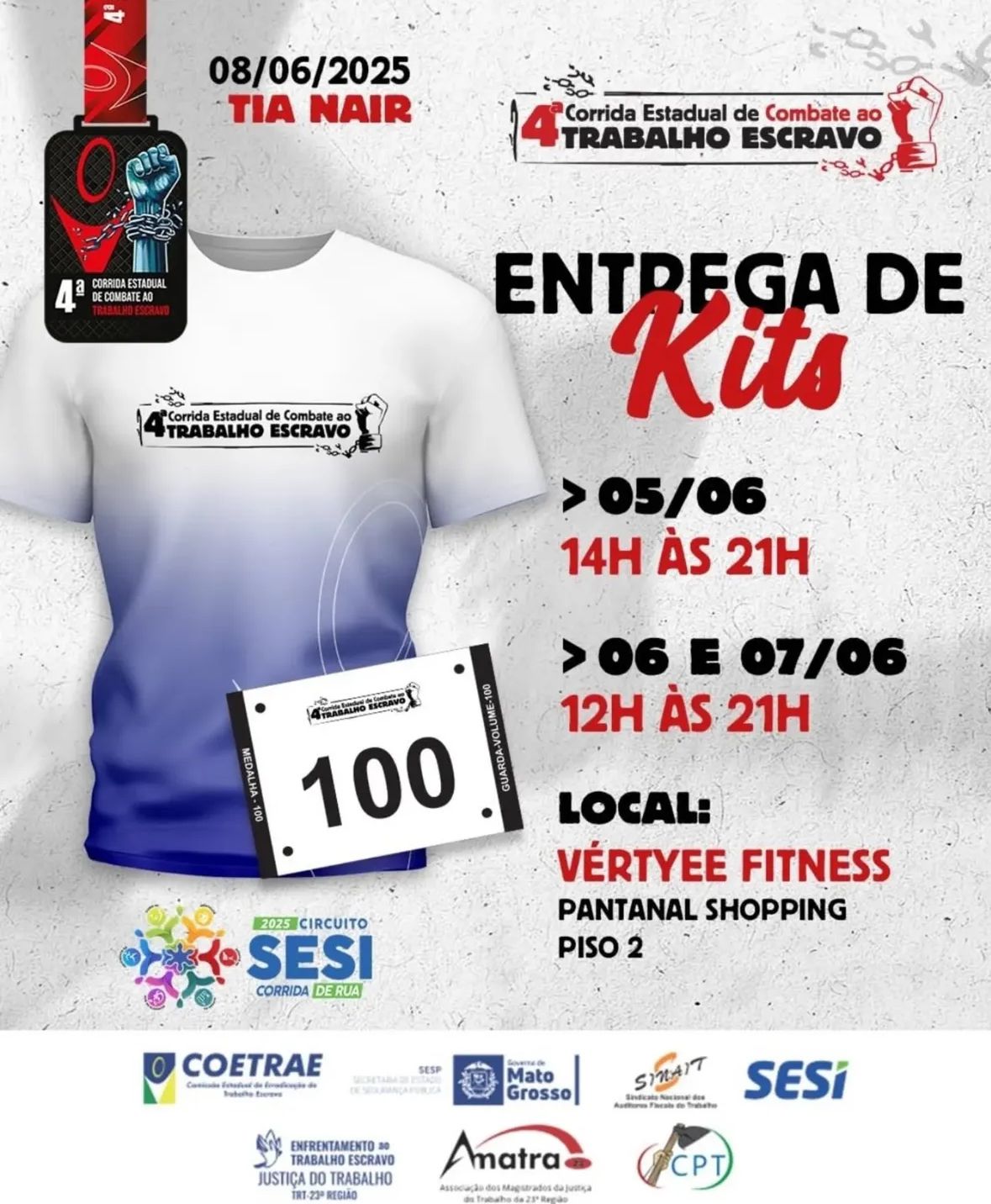DATA: 4ª CORRIDA ESTADUAL DE COMBATE AO TRABALHO ESCRAVO Será realizada no domingo, dia 08 de junho de 2025.