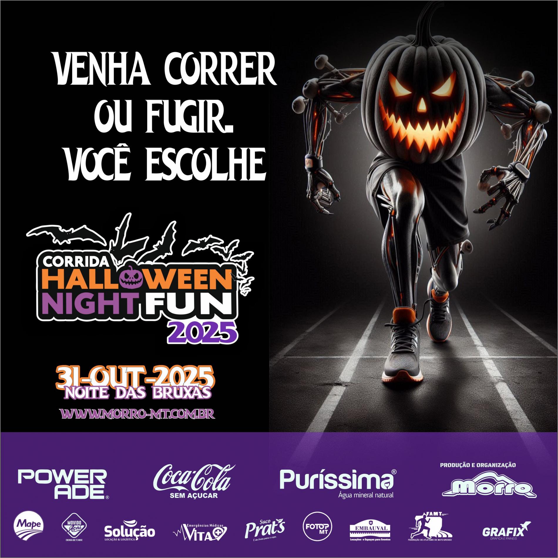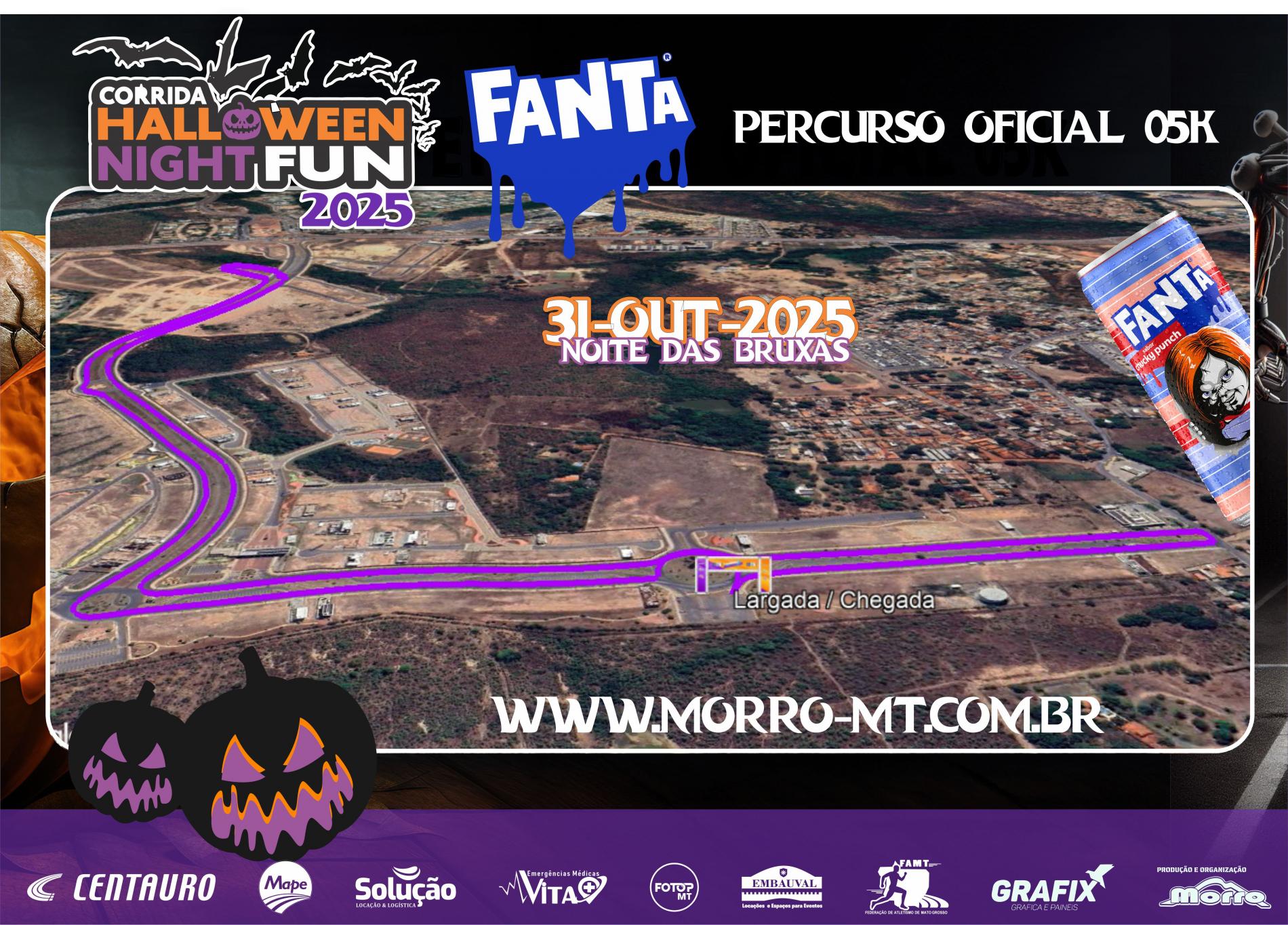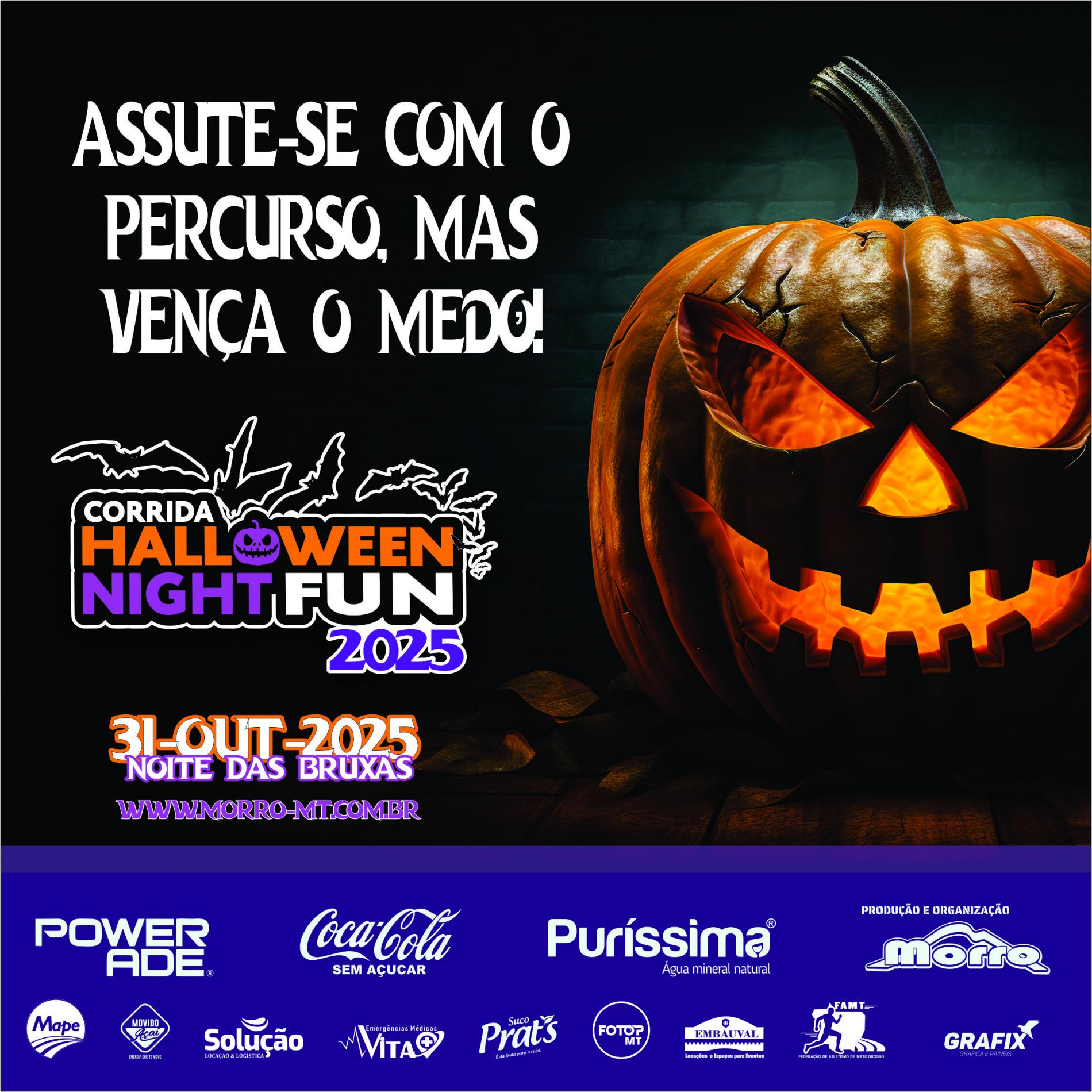 Art. 1º – A Corrida Temática Halloween Night Fun 2025 ocorrerá no dia 31 de outubro de 2025, com largada às 21h no Parque Dubai, (Monumento Ginco Dubai - Ribeirão do Lipa) em Cuiabá-MT, percorrendo distância aproximada de 5 km.