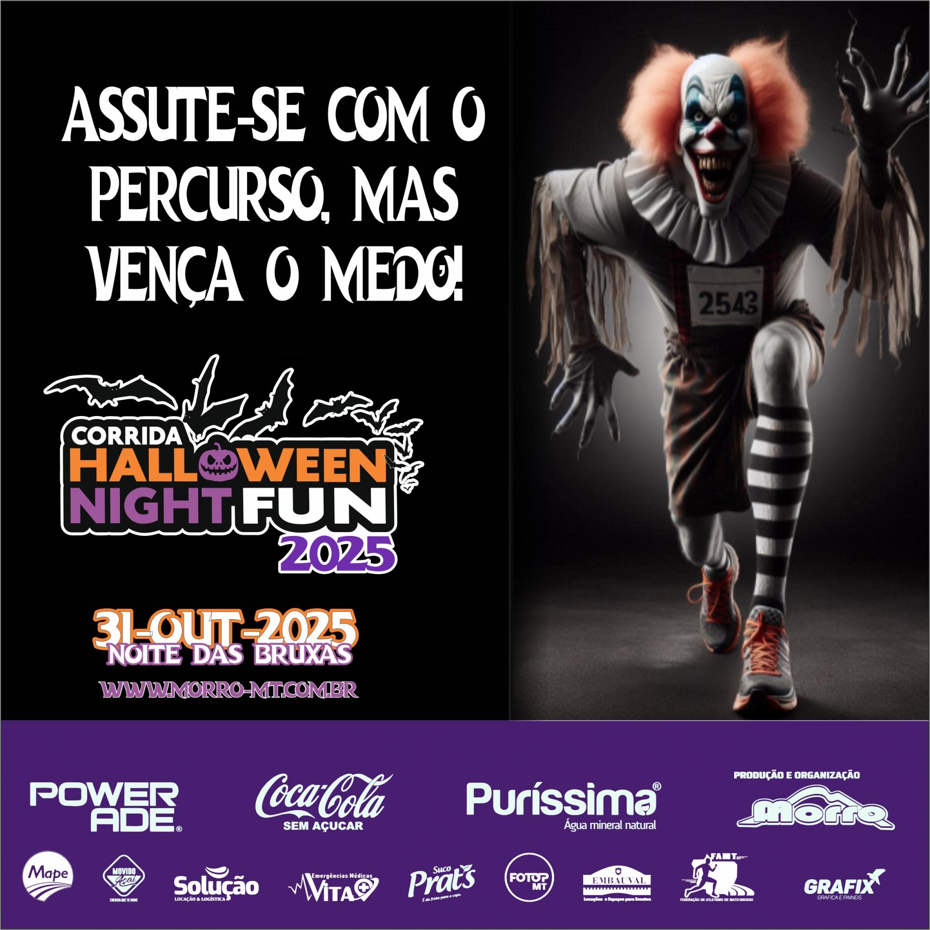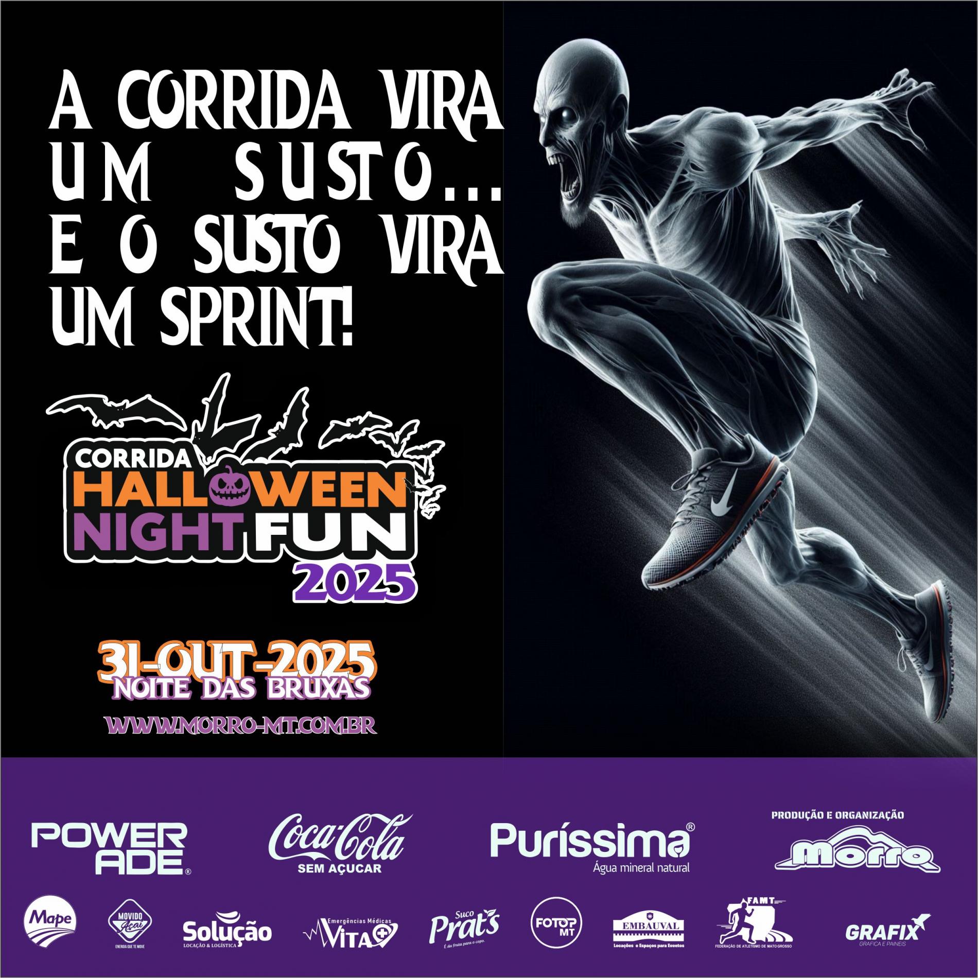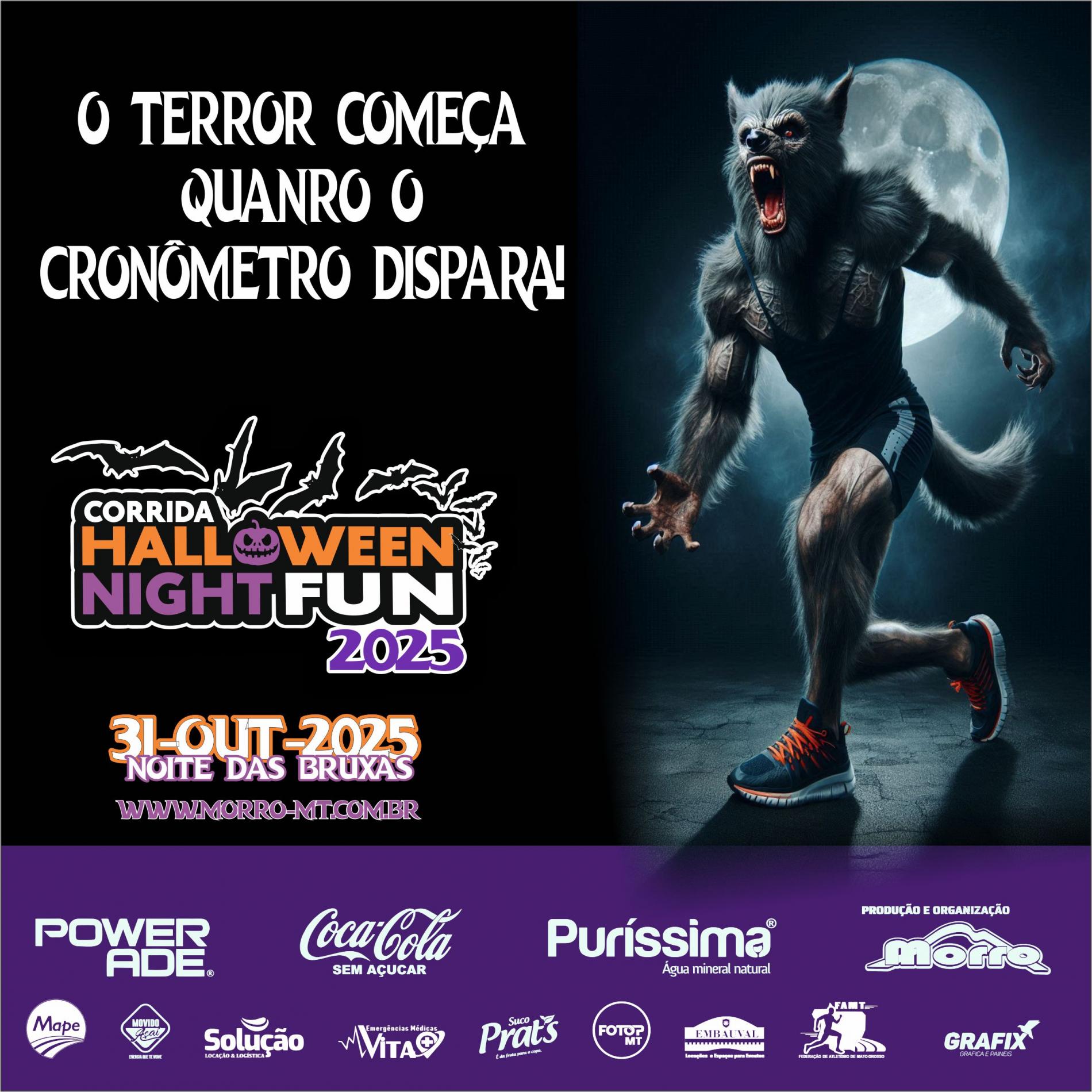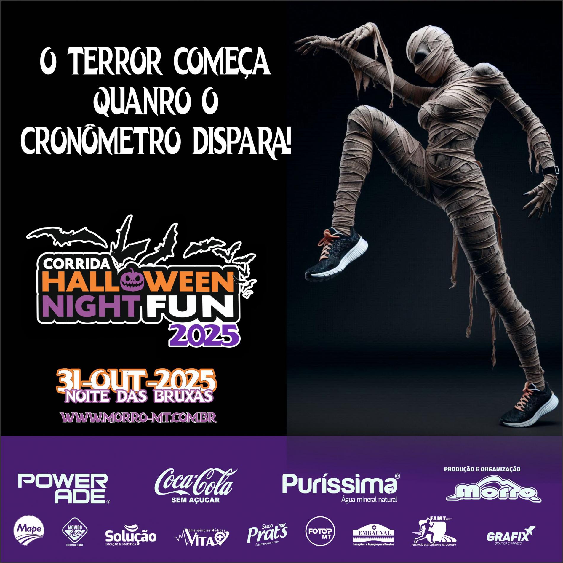 Art. 1º – A Corrida Temática Halloween Night Fun 2025 ocorrerá no dia 31 de outubro de 2025, com largada às 21h no Parque Dubai, (Monumento Ginco Dubai - Ribeirão do Lipa) em Cuiabá-MT, percorrendo distância aproximada de 5 km.