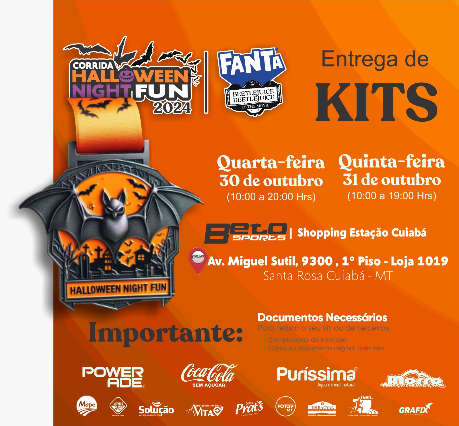 Art. 2º - A Corrida será realizada no dia 31 de outubro de 2024, às 21:00h, no pátio da Arena Pantanal.