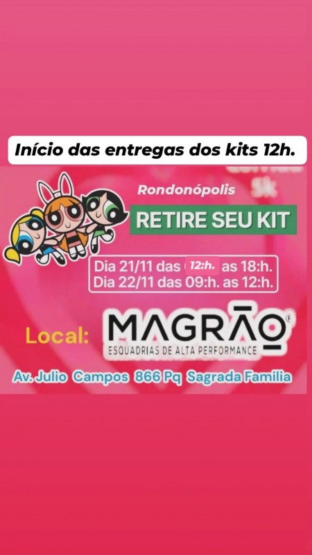 A atleta que não retirar o kit nas datas e horários estipulados fica impedida de participar da corrida.