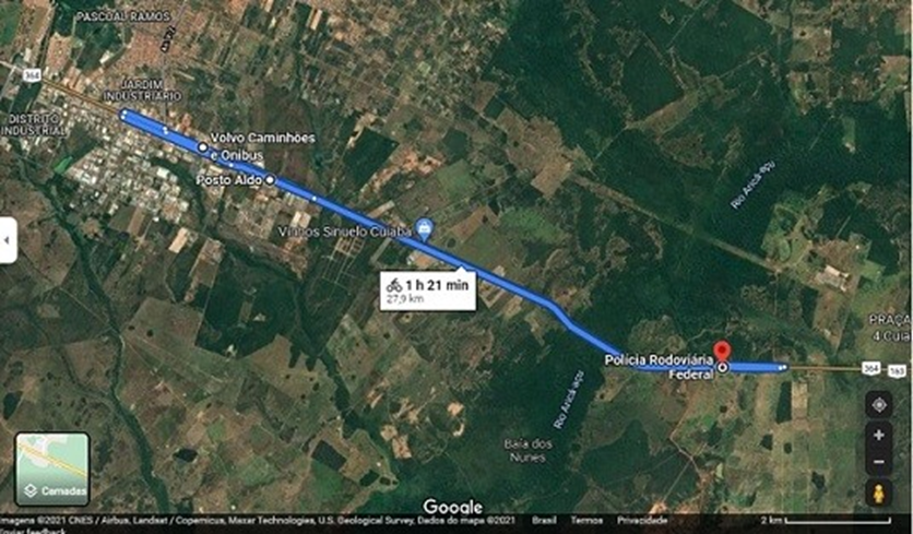 1. Posto da PRF unidade 102 - saída para Rondonópolis, seguindo pela BR 163/364 até o Posto do Aldo no Distrito Industrial, com parada para hidratação e após retorno pela BR 163/364 sentido local de chegada no Posto da PRF unidade 102.
