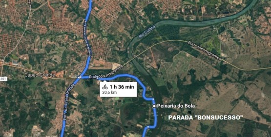 8° O PEDAL ROTA DO PEIXE “BONSUCESSO”, tem o seguinte trajeto: saída da frente do Várzea Grande Shopping, seguindo pela Av. Filinto Muller, Av. Alzira Santana, Estrada da Praia Grande, Comunidade do Pai André, Bonsucesso (Parada para o café da manhã tradicional várzea-grandense), retorno pela Estrada da Praia Grande, chegada na frente do Várzea Grande Shopping.
